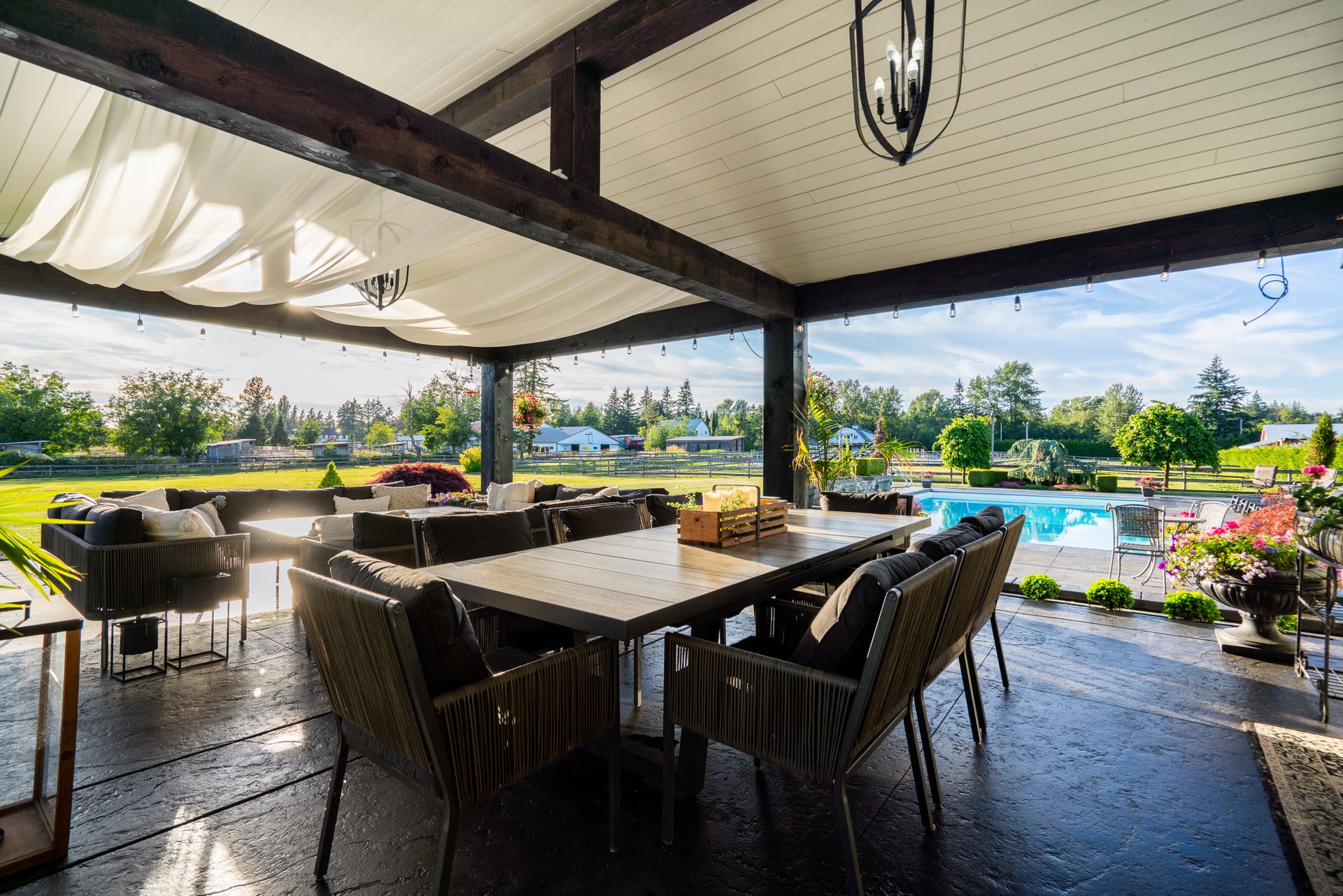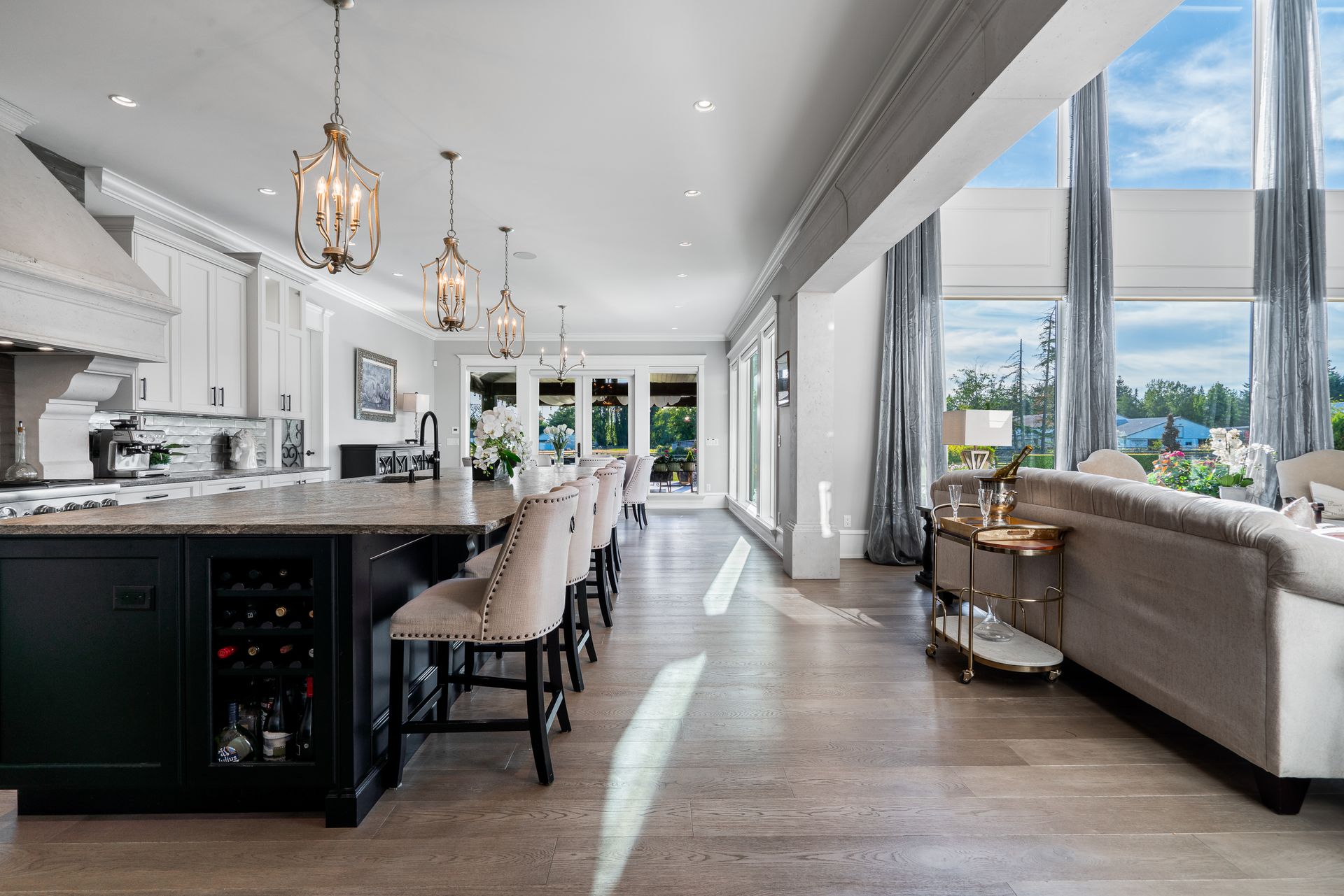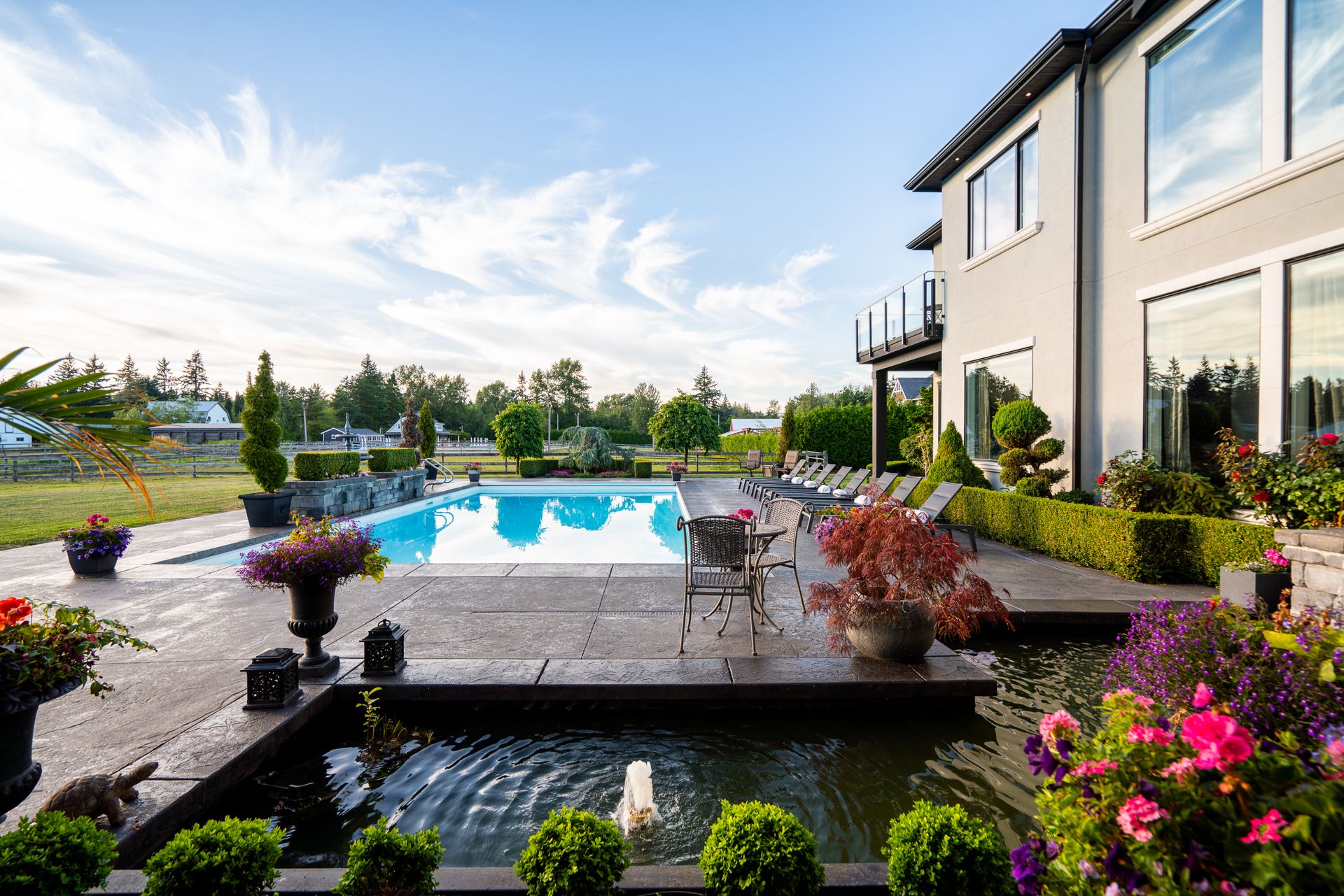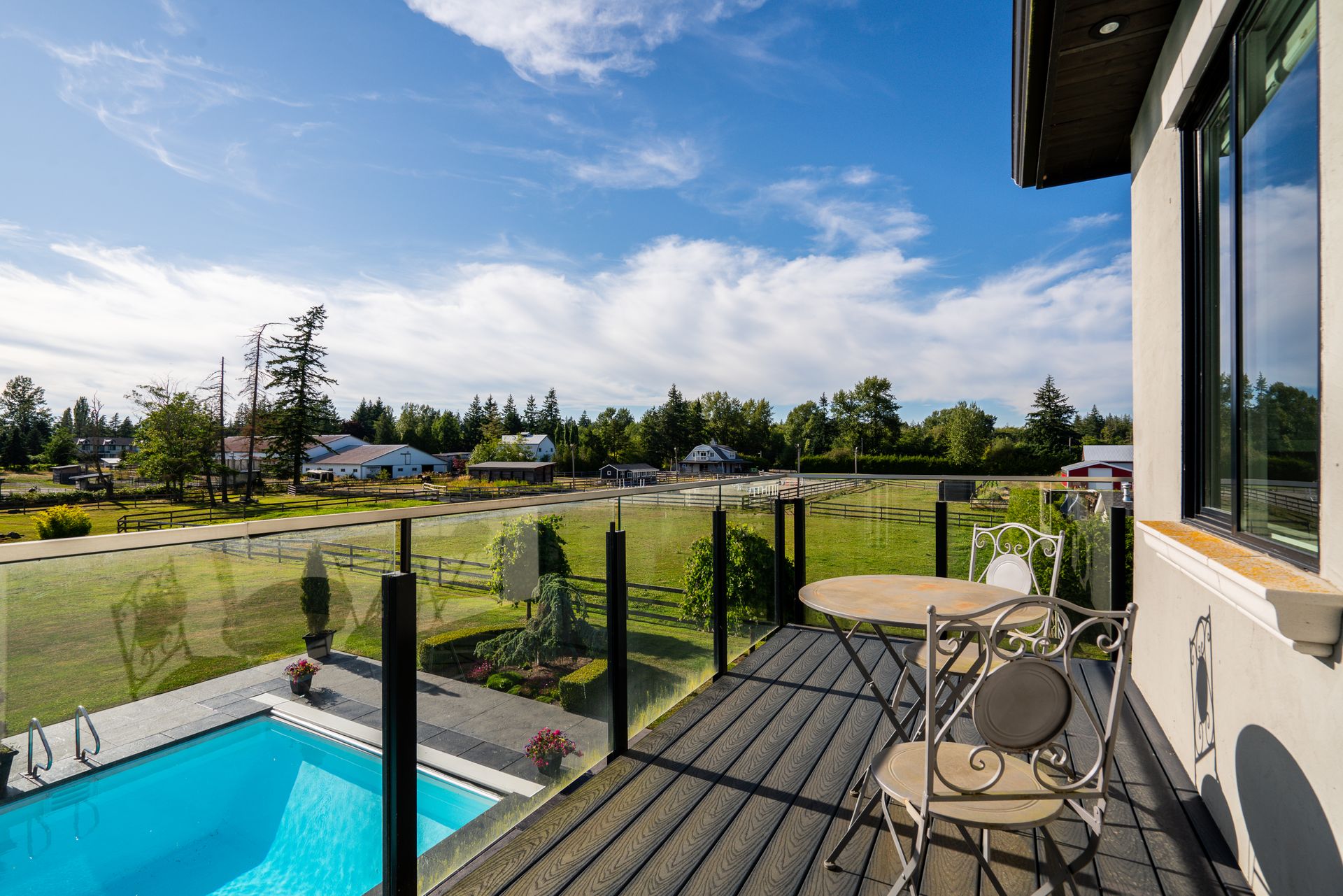 Discover this magnificent European Inspired French Chateau situated on this gated 7.1 acre Equestrian Estate in Langley’s most exclusive Campbell Valley. The main residence together with its private guest suite offers over 9200 sq. ft. of elegant living space on two expansive levels with entertainment size principal rooms, 7 bedrooms, 8 bathrooms and boasting an impeccable choice of quality materials and luxury appointments. Experience a wonderful indoor outdoor lifestyle with walk out covered terrace with summer kitchen and fireside lounge overlooking the resort swimming pool and spa. Additional features include a separate barn with 6 stables, round pen, riding ring and garage parking for 7 vehicles.