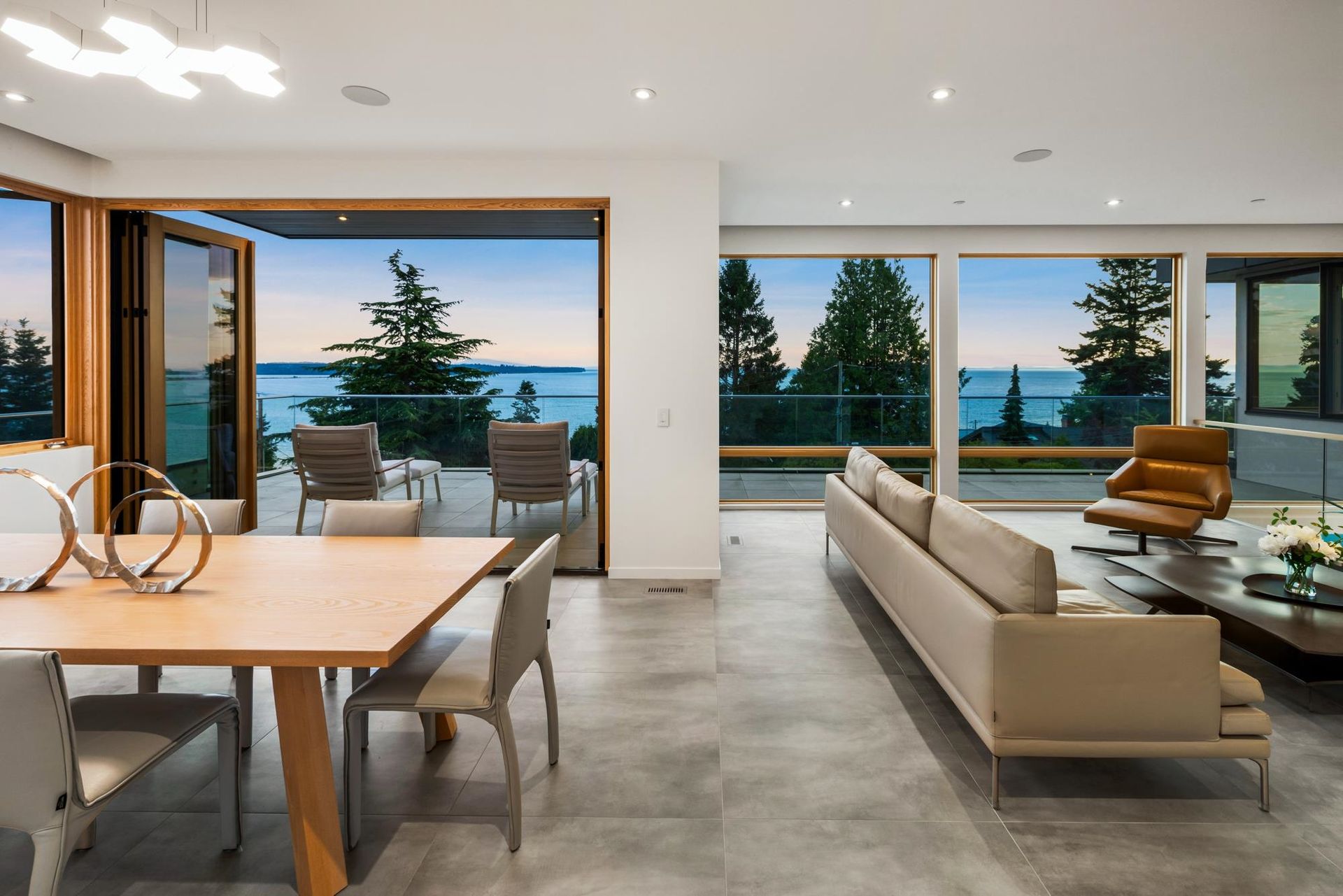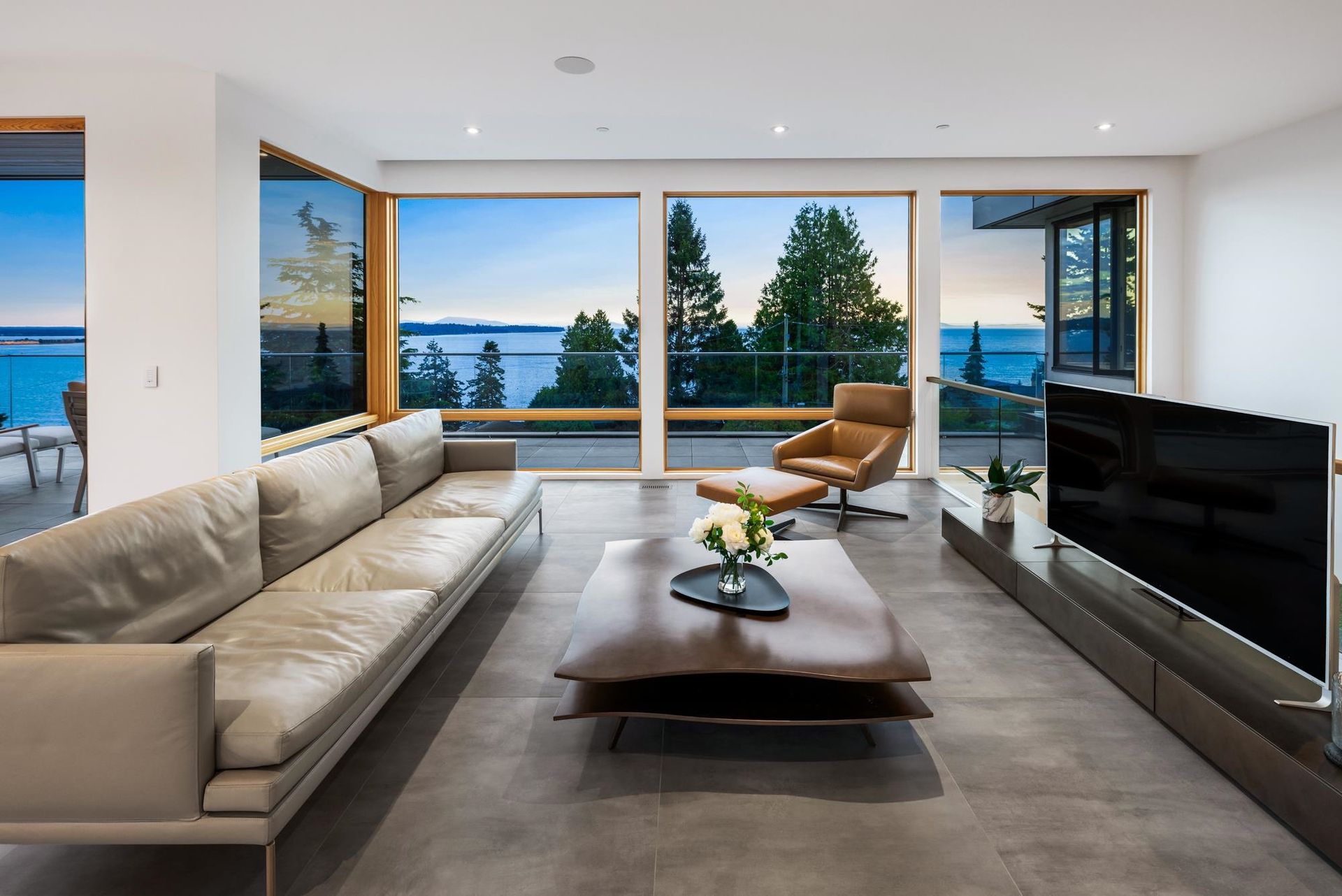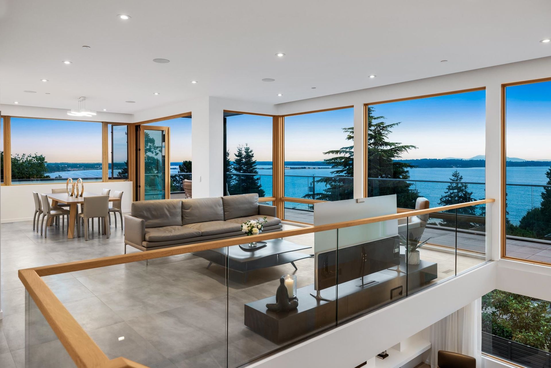 Perched on one of White Rocks best view streets. Built by renowned, award winning builder Glen Jaheny, this modern masterpiece, sits on a 9,000+ sqft lot with panoramic ocean and mountain views. 6,000+ sqft blends luxury, elegance, and functionality. The gallery open-concept layout features sleek design, top-tier appliances, high-end finishes, and exceptional craftsmanship. Two beautiful primary suites one on the main, elevator, gym, media room, and a one-bedroom legal suite, smart home technology throughout make this residence a rare exceptional opportunity.