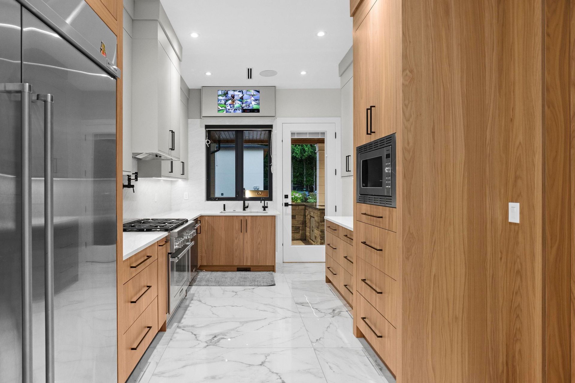 Discover this WORLD-CLASS modern marvel on over an acre of gated park-like property. The exquisite design & high-quality finishes create a remarkable residence that caters to the security & convenience of today’s active family lifestyle. Experience a spacious main level featuring soaring ceilings, floor-to-ceiling windows, & generous principal rooms that offer an exceptional indoor-outdoor living experience, complete with a walk-out terrace overlooking the grounds. Additional features include a chef's kitchen with Miele appliances, a secondary kitchen, FOUR primary bedroom suites + additional guest bedrooms, library, office, gym, sauna, theatre adorned with fibre optic star ceiling, Control4 & more. BONUS: 2 bedroom legal suite & large outbuilding that can serve as additional living space!